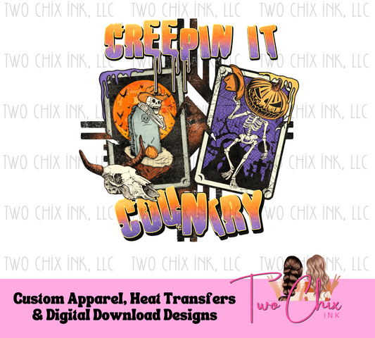 Creepin' It Country: Skeleton Pumpkin, Longhorn Skull, Halloween Design, Rustic Charm, Purple Orange Black, Autumn Style DTF Ready to Press Heat Transfer