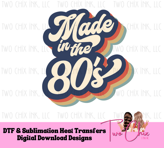 Made in the 80s Retro Style DTF Ready for Press Heat Transfer Vintage Style Tshirt Design