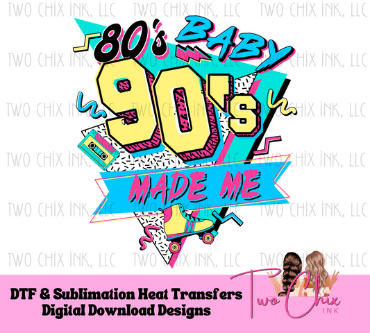 Neon 80s baby 90s Made Me DTF Ready for Press Heat Transfer Tshirt Design
