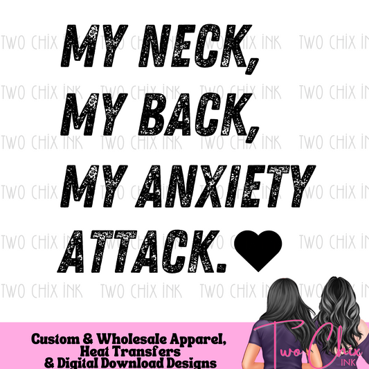 My Neck, My Back, My Anxiety Attack DTF Transfer | Funny Relatable Graphic | Custom Apparel Design | Wholesale Tshirts